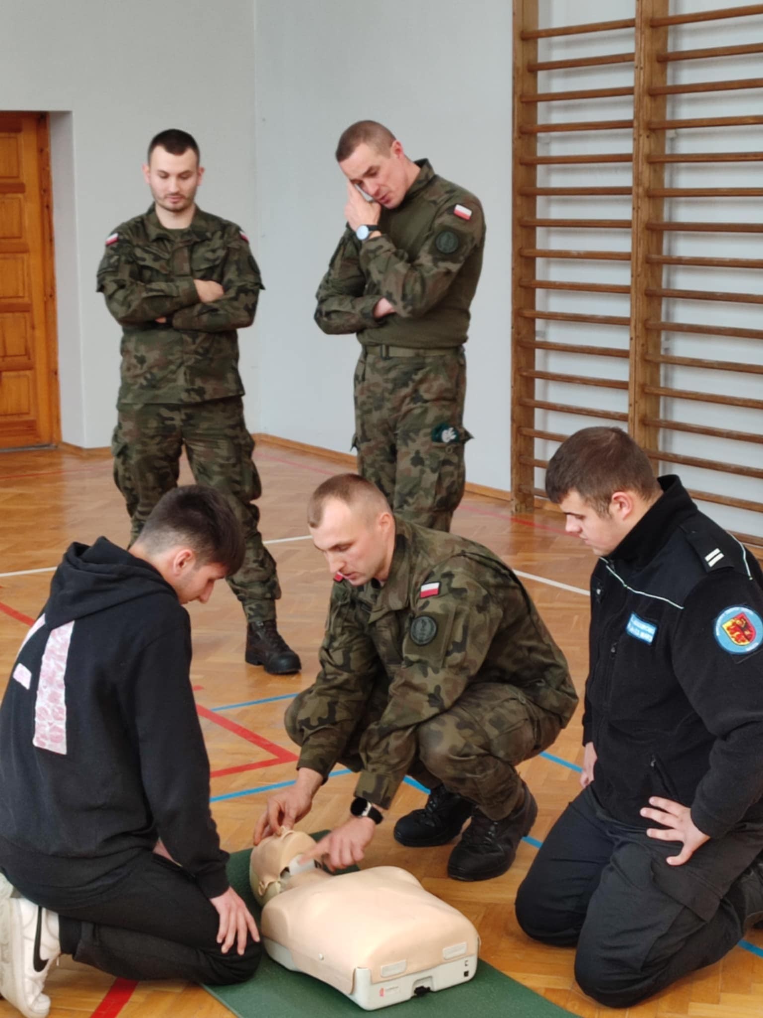 W ramach IV edycji programu "Edukacja z wojskiem" gościliśmy w dniach 7.11. oraz 24.11.2025 r. żołnierzy Wojska Polskiego, którzy przeprowadzili zajęcia proobronne dla kadetów klas mundurowych. Szkolenie takie miało na celu podniesienie świadomości młodzieży w obszarze bezpieczeństwa. Uczniowie poznali zasady alarmowania, wzywania pomocy, ewakuacji w sytuacjach zagrożenia.